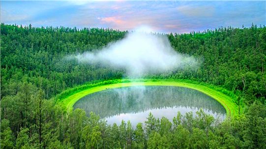 早餐后,驅(qū)車前往【中國最美火車站】阿爾山火車站是由日本人在1937年建造的,屬于帶有東洋風(fēng)格的低檐尖頂二層日式建筑,一層外壁是用花崗巖堆砌而成的亂插石墻,樓頂則使用赭色水泥涂蓋,如今火車站保存完好,仍在正常投入使用,甚至很多游客來阿爾山火車站網(wǎng)紅打卡拍照。打卡后,驅(qū)車前往【月亮天池】又名基爾果山天池,因其形如圓月而又位于高海拔的火山錐內(nèi),故名月亮天池。月亮天池火山是一座晚更新世火山,湖底地形邊緣陡而中間平緩,非常適合沉積物的保存。月亮天池形狀極圓且奇美,既沒有出口亦沒有入口,不管晴天或雨天,水位都保持不變,大自然的巧奪天工在這里體現(xiàn)的淋漓盡致。進入大門后,月亮天子的雕塑坐落于此,一路前行,從木棧道入口到觀景臺有3公里的木棧道,600步臺階,半山腰有觀景臺,可以先一睹天池之美。棧道的兩側(cè)是原始森林松樹、樺樹、白楊等兩側(cè)林立,盡顯風(fēng)姿月亮天池分高矮兩個觀景臺,走到高的觀景臺,可以欣賞到藍(lán)色的滿月,在陽光的照射下,平靜的水面更顯得波光粼粼。驅(qū)車前往【同心天池】同心天池因湖型呈心狀而得名,當(dāng)?shù)厝朔Q之臥牛泡子,景區(qū)里沿著木質(zhì)臺階拾級而上,大約走半個小時就可以到達山頂,觀景臺的高度相對于天池不算很高,大約以40度的角度俯瞰天池,湖的東南側(cè)有兩處泉眼,水溫常年保持在14℃左右,每天清晨可以看到水面上的霧氣騰騰。午餐后驅(qū)車前往【山水巖壁畫】筆直的矗立在綽爾河岸邊,氣勢恢弘,渾然天成。山水巖壁畫系由千百萬年前地殼運動形式的地質(zhì)斷層所致,是由玄武巖熔巖流堆疊而成。山水巖壁畫斷層朝北,久不見陽光,玄武巖熔巖流上的裂縫中生長著一簇簇很有規(guī)律的綠色灌叢和苔蘚,就像畫布上著的墨,色彩極其豐富,遠(yuǎn)遠(yuǎn)望去猶如一幅掛在半空中的巨幅潑墨山水畫卷,觀者無不對這幅天然的山水巖壁畫驚嘆不已。